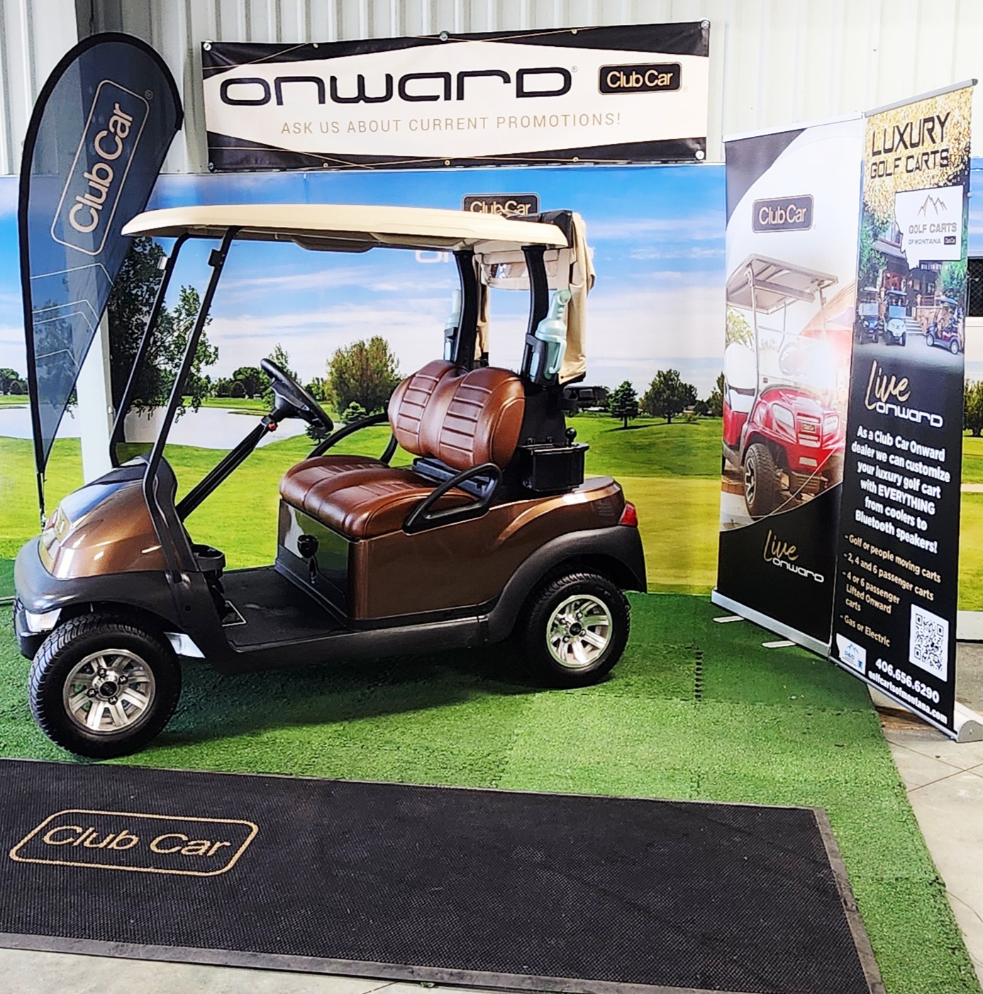premium brown seats, new body, duel sand bottles, bag cover, cooler and club head ball washer.